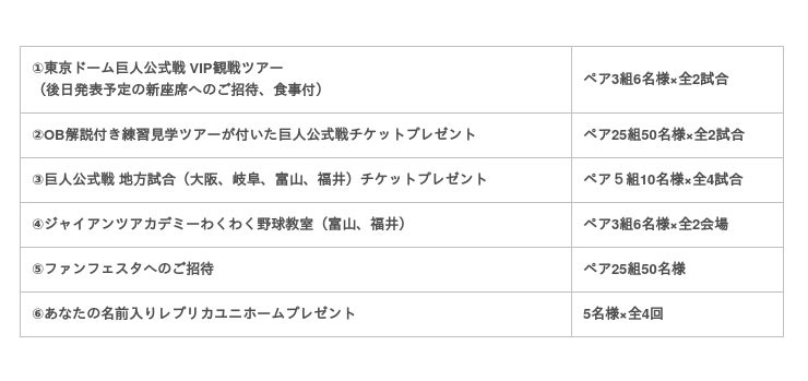 全国のジャイアンツファンの皆さま必見!魅力的な特典が盛り沢山
