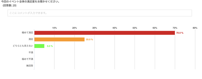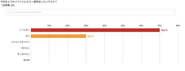 実施後のアンケートでは、参加者皆様が横のつながりが出来たと回答、イベントの満足度についても非常に高い評価となりました。