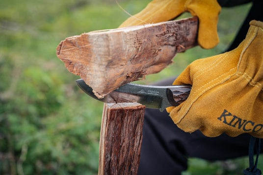 堅い広葉樹もバトニングできる、耐久性が最も高いフルタング構造を採用。5.6mmの刃厚により、薪が裂けるように簡単に割れます。