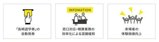 また、修学旅行などの学生団体の多くが使う「長崎遊学券」は、学生一人ひとりが割引クーポン券を有人窓口で提示し、窓口スタッフによるクーポン券の確認・専用チケットの発券・会計処理を行っていたため、年間来場者数48万人(長崎居留地歴まちグランドデザイン令和元年度による)を超える大浦天主堂では、受付業務の負担増加や混雑の一因となっていました。