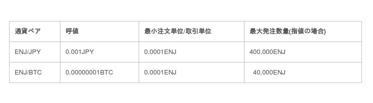 現物取引所の取扱いペアに、下記ENJペアが追加されます。