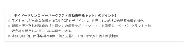 「ダイドードリンコ ペーパークラフト自動販売機キット」の提供に関する情報はこちらをご参照ください。