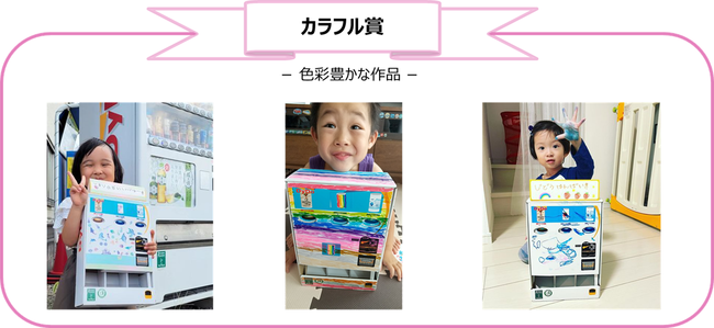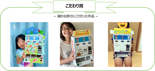 優秀作品は、「カラフル賞」、「こだわり賞」、「らぶりー賞」の3部門にて、各3作品ずつ選定しました。なお、今回の受賞作品は、ペーパークラフト自動販売機の公式SNSアカウント、「ペーパークラフト自動販売機を作ろう!」公式特設サイトでもご紹介しております。