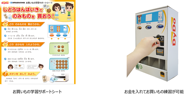 提供先から「買いもの学習に活用できる」というご意見を参考に、教科書や参考書などを数多く出版されている新興出版社啓林館監修のもと、ペーパークラフト自動販売機を活用した「お買いもの学習サポートシート」を同梱しております。