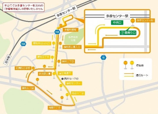 ※多摩センター駅方向の「多摩郵便局」には停車しません。