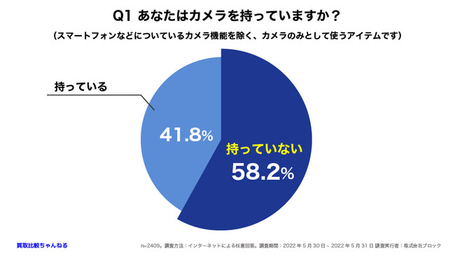 株式会社ブロックと株式会社浜屋が共同運営している買取比較ちゃんねる(URL:https://www.hamaya-corp.co.jp/media )は、20歳以上の男女2409人を対象に「カメラに関する意識調査」を実施しました。