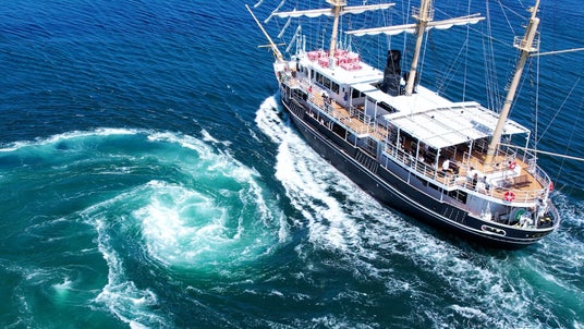 世界最大級の渦潮を「咸臨丸」「日本丸」の大型帆船で体験する約1時間のクルージングです。