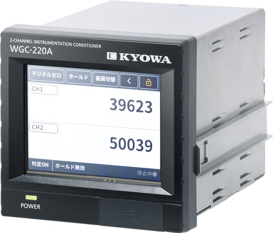 和算型コンディショナの最新機種となるWGC-220シリーズは、タッチパネルを採用し、且つ1台で2チャネルの測定と高速演算が可能なひずみゲージ式変換器(センサ)用指示計・表示器です。