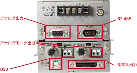 アナログ出力、RS-485、USB、アナログモニタ出力など豊富な入出力インタフェースと制御入力 11点、制御出力 15点の多点制御入出力に対応します。PLCをはじめとした制御システムとの統合がしやすく、柔軟な制御と監視が行えます。
