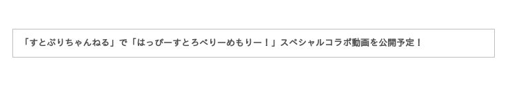 YouTube「すとぷりちゃんねる」にて「はっぴーすとろべりーめもりー!」とのスペシャルコラボ動画を2022年1月11日(火)に公開予定です。昨年8月に公開した、「すとぷり」がきのこたけのこ論争を繰り広げる「きのこの山・たけのこの里 超いちご祭り」スペシャルコラボ動画(https://youtu.be/M7EjqBwtPR0)では、視聴者様からのコメント数は12,849 件、再生数も235万回を突破(2022年1月4日時点)しました。次はどんなスペシャル動画になるか、是非ご期待ください。