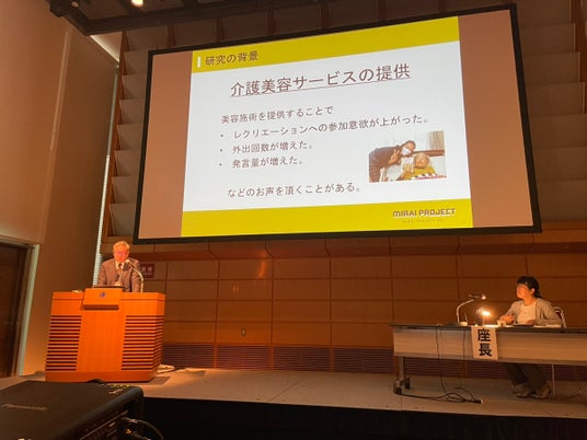高齢者向け美容サービスを専門とした人材を育成する「介護×美容」専門のプロフェッショナルスクール【介護美容研究所】を運営する、株式会社ミライプロジェクト(本社:東京都渋谷区 代表取締役:山際 聡)は、2023年7月~2024年1月に介護美容が高齢者ケアに与える効果に関して実証研究を行い、結果を2024年6月15日、16日に東京国際フォーラムで開催された「第25回 日本認知症ケア学会大会※」で演題発表いたしました。