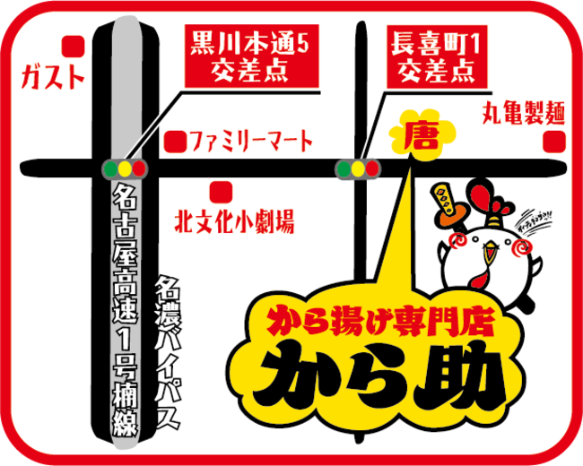 愛知・岐阜・三重で13店舗、毎月の総来店50,000人を超える『から揚げ専門店 から助』の14号店が愛知県名古屋市北区に誕生致します。 『ザク旨』『肉汁ジュワ~』なジャンボ唐揚げを『揚げたて』でご提供いたします。
