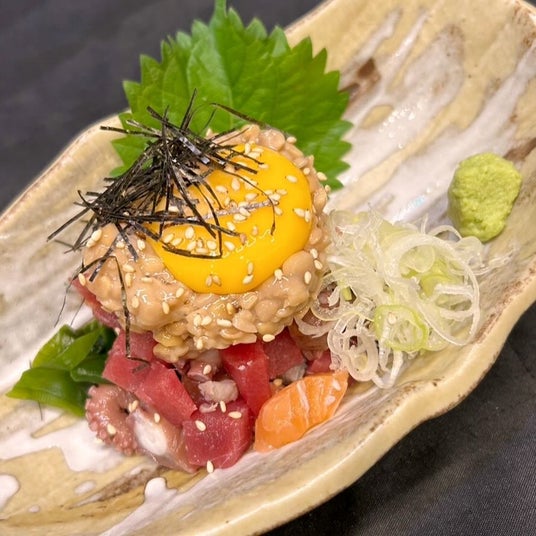 活菜旬魚 さんかい 新さっぽろ店ヘルシーDo!海鮮納豆ユッケ ~オリゴノール入り~ 979円(税込)