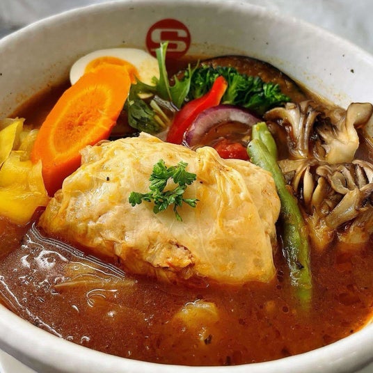 ビタミンC豊富なキャベツ、抗酸化作用の高いひじきも入ったヘルシーなロールキャベツに、ポリフェノール豊富な舞茸を合わせたスープカレー。スパイスの効いたオリゴノール入りのスープで血流もアップ!アンチエイジングに◎