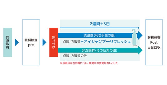そのアイシャンプー、以前よりユーザーの方から「目がすっきりする」「かゆみまで洗い流しているよう」などのコメントを花粉症シーズンのたびにいただいておりました。そこで2023年春、アイシャンプーシリーズの中で花粉症に悩む方から特に人気が高いメントール成分配合タイプ「アイシャンプー リフレッシュ」を使い、眼科医の先生方のご協力を得て、「花粉症の目のかゆみ」に関する臨床試験を実施いたしました。