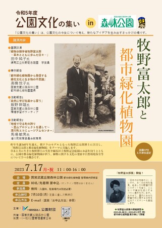 今年度の「公園文化の集い」は、昨年生誕160年を迎え、朝ドラのモデルとなった牧野富太郎博士に注目し、