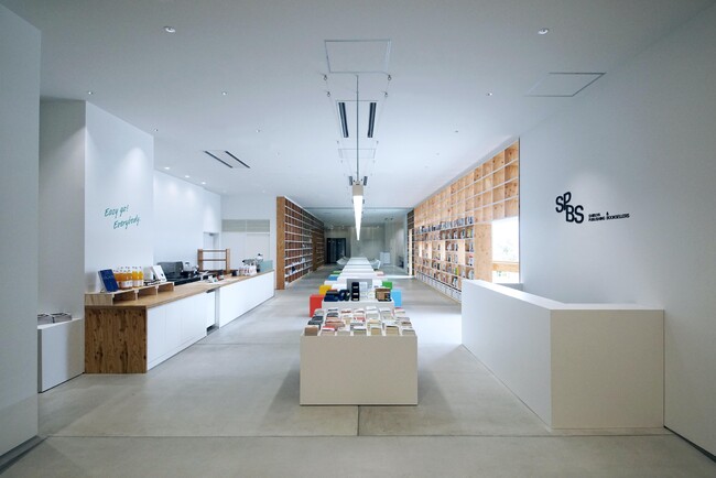 窓一面から差し込む明るい光と美しい白壁と、書店ならではのカラフルな本の彩りが印象的な会場であるSPBS TOYOSU。