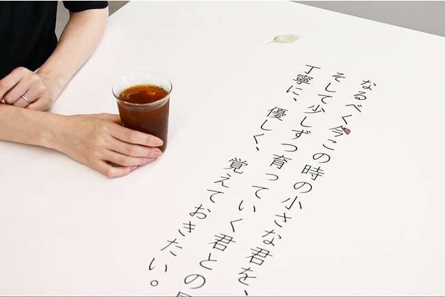 展示「未来の自分へ贈る、小さな君との日々のこと」は、忙しなく過ぎていく子育ての日々の中で、少し立ち止まり、自分にとって大切なものを今一度見つめるきっかけにしていただければという思いで企画されました。