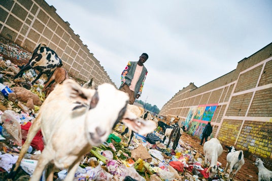 ケニアの巨大スラム街キベラの若者とコラボレーションした写真・映像をはじめ、キベラの職人が廃材から生み出した日用品に花をいけた作品、ケニアに送られた古着と日本の着物生地を掛け合わせた新アップサイクルコレクションなどを展示。
