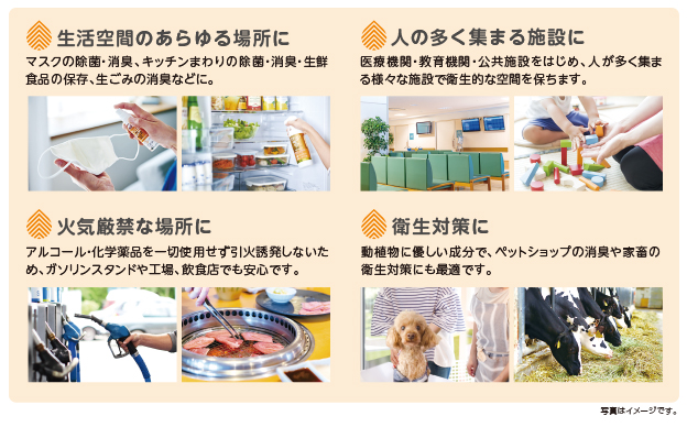 ウイルスにも菌にも正しい感染予防をしましょう! 安全で強力な除菌力と消臭力 !!