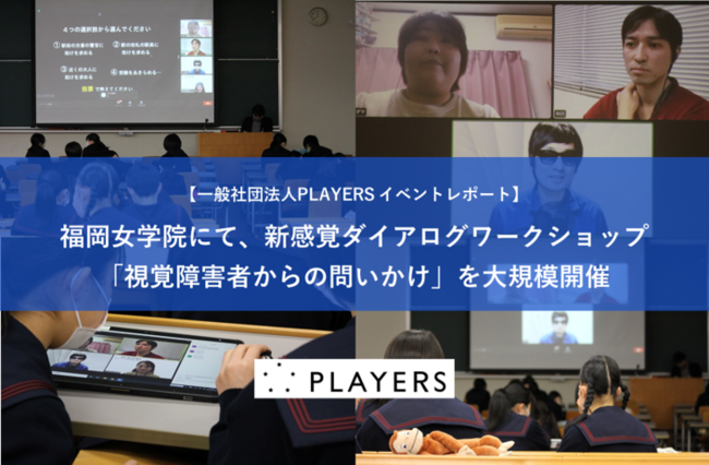 一般社団法人PLAYERS(以下、PLAYERS)は、創立137年の歴史を持つ私立女子中学校である福岡女学院中学校(https://www1.fukujo.ac.jp/)にて、2022年1月20日(木)に、心の声に耳を傾ける新感覚ダイアログワークショップ「視覚障害者からの問いかけ」を、中学3年生80名に対して、人権学習の一環として開催しました。