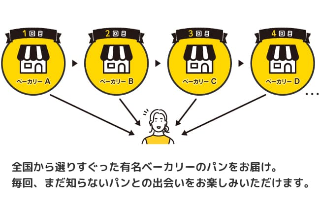 全国から選りすぐりの有名ベーカリーのパンをお届け。毎回知らないパンとの出会いを楽しめます。
