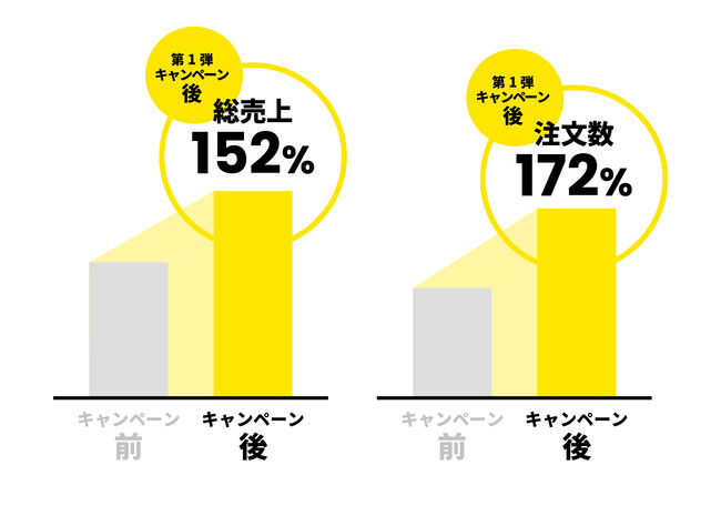 第1弾では1ヶ月のキャンペーンで総売上は52%増。1店舗あたりの注文数は平均2倍となりました。