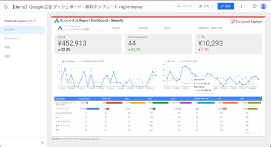 今回無料で配布する「Google広告版Looker Studioダッシュボードテンプレート」は、Google広告のサマリーデータをLooker Studioで閲覧できるテンプレートです。