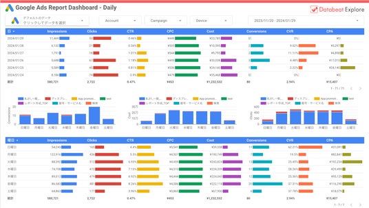 上記で紹介しているテンプレートは、Google広告の詳細な分析やクライアントへのレポートとして活用しやすい仕様ですが、