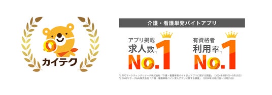 カイテク_介護・看護単発バイトアプリにおいて有資格者の利用率No.1を獲得