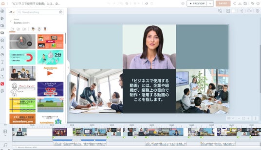 2,000を超える豊富なテンプレートや10,000以上の素材、およびAIによる動画の自動生成技術を活用し、研修・マーケティング・社内周知などのビジネス用途に適したアニメーション動画を、専門的な編集スキルがなくてもスピーディーに内製化できます。