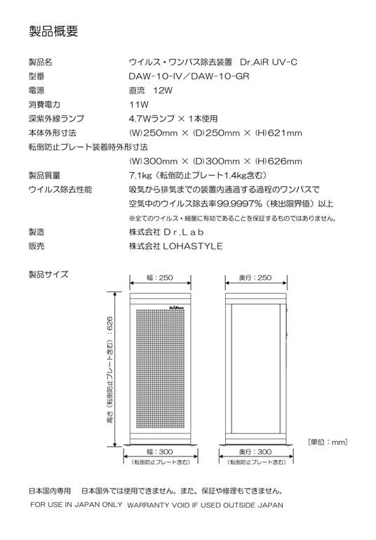 ・医療施設で利用されているDr.AiR UV-C DAT-10 のウイルス・細菌類除去性能を継承。