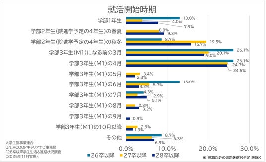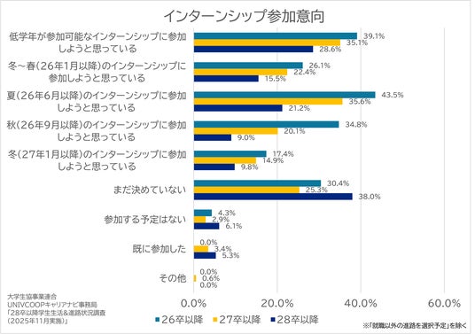 大学生協事業連合UNIVCOOPキャリアナビ事務局は、株式会社キャンパスサポート(本社:東京都新宿区、代表取締役:松本純)による運営のもと、「UNIVCOOPキャリアナビ事務局 28卒以降学生生活&進路状況調査(2025年11月実施)」を実施し、その結果を発表しました。当事務局では、大学生の就活動向・実態を把握することを目的に、大学生協組合員を対象とした調査を毎年11月に実施しています。