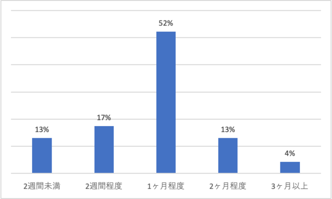 ■男性育休の取得期間は1カ月程度が半数以上