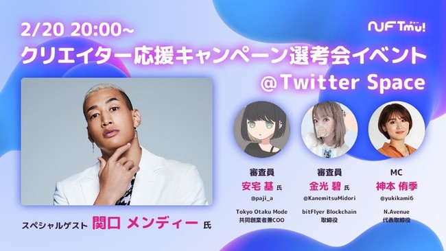なお、β版リリースに合わせて実施中の「クリエイター応援キャンペーン」選考会イベント(2月20日夜20時~ Twitter Space上で実施予定)には、スペシャルゲスト関口メンディー氏(EXILE)も参加予定です(※詳細は[こちらのプレスリリース](https://prtimes.jp/main/html/rd/p/000000022.000047016.html))。ぜひ聴いてみてください。