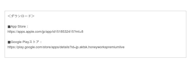 ・GooglePlayストア:https://play.google.com/store/apps/details?id=jp.aktsk.honeyworkspremiumlive