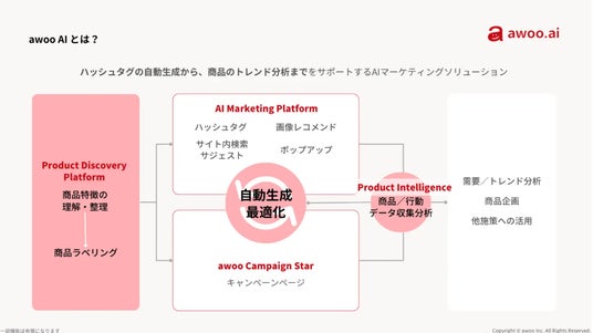 事業内容:AI技術を活用したマーケティングソリューション、awoo AIの提供