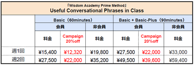 Useful Conversational Phrases in Class (60min) +「Basic-Plus」Class (30min)