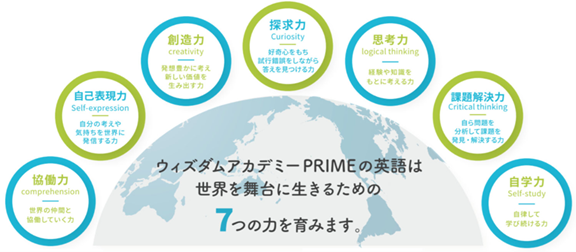 幼小期は、耳の黄金期。ウィズダムアカデミープライムの英語教育は、まだ耳が柔らかいうちに英語のリズムやイントネーションを身体に染み込ませるように考案された独自のプログラムです。