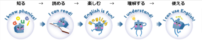 特に小学校入学期は、文字や数字の認識力の成長が著しい時期なので、正しい発音を身につける、自力で単語を読む、単語の音からスペルを書き起こす、さらに、質問に対して単語ではなくセンテンスで返すことにも挑戦し、活きた英語、使える英語、話せる英語に取り組みます。