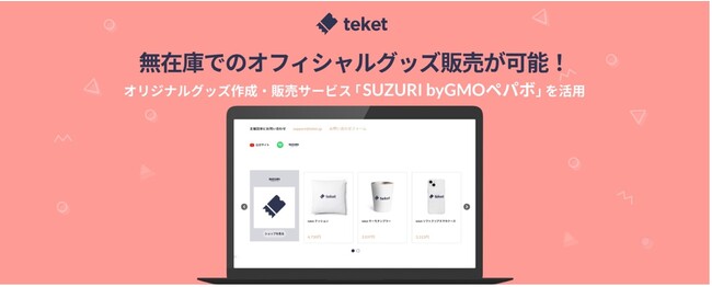 電子チケット販売サービス「teket(テケト)」は、オリジナルグッズ作成・販売サービス「SUZURI byGMOペパボ」のAPIを活用し、無在庫でオフィシャルグッズの販売を開始しました。