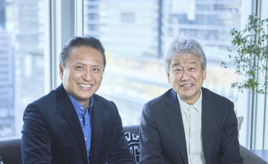 左:代表執行役員社長 赤井祐記、右:名誉会長 古森 茂幹COLLECTIVE GranTokyo SouthTower ナウトジャパン オフィス内