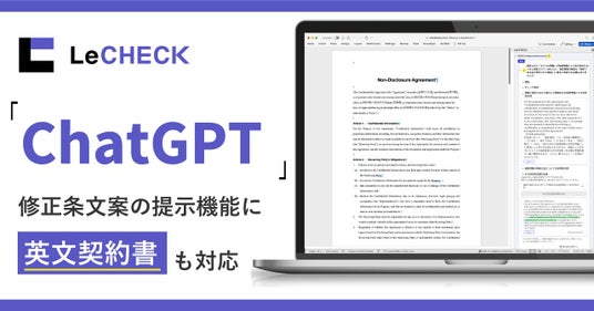 株式会社リセ(本社:東京都千代田区 、代表取締役社長、弁護士(日本・米国NY州):藤田 美樹、 以下「リセ」)は、契約書レビュー支援AIクラウド「LeCHECK(リチェック)」のChatGPTを活用した修正条文案の提示機能(β版)が英文契約書にも対応を開始したことをお知らせします。