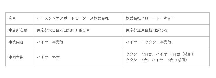 2社227台が傘下になり、東京・大阪を中心に8,250台体制へ