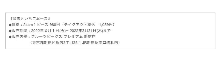 春を感じる新商品『淡雪といちごムース』を新宿店限定で販売