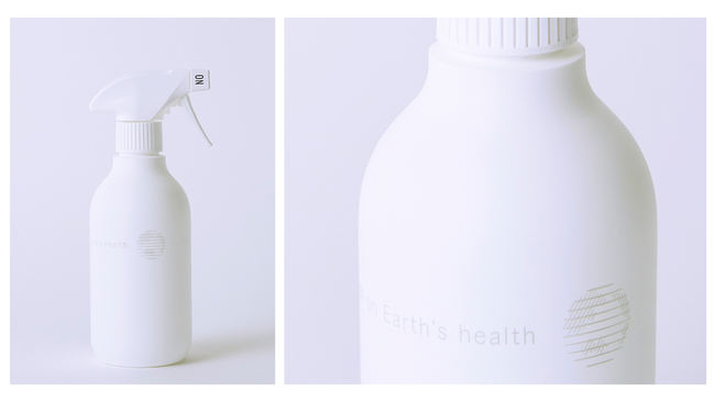 ボトルに書かれた文字は私たちのコーポレートスローガン「地球の健康を見つめる」を意味する、”Keeping a close watch on Earth’s health”