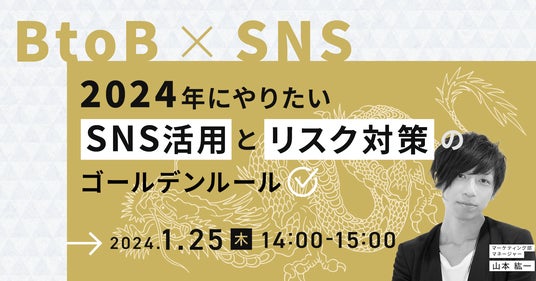 ビジネスにおいてSNSの活用は不可欠ですが、正しいアプローチが成功の鍵です。今回のウェビナーでは、BtoB分野でのSNS活用とリスク対策について焦点を当て、2024年に押さえておきたい効果的かつ安全にSNSを運用できるノウハウを紹介します。このウェビナーに参加して、今年こそSNSの活用の一歩を踏み出しましょう!