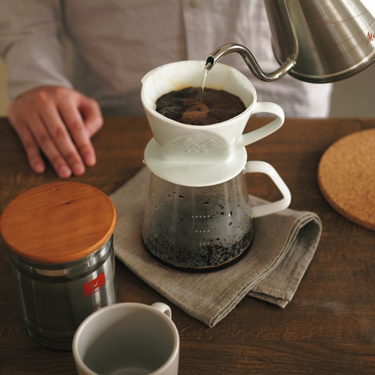 蒸らした後は一度にお湯を注ぐだけ。お湯の流れをコントロールするメリタ伝統の1つ穴式フィルターに新ラインナップ。