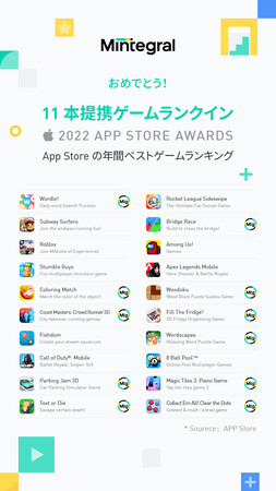 Appleは11月28日、2022年のApp Store Awardsの受賞作を発表しました。App Store Awards のベスト無料ゲームのランキング中、Mintegralが提携している11タイトルはランクインできました。