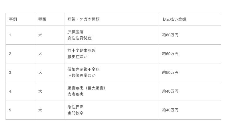 ※上記の数値は、PS保険加入者さまから請求されたものであり、ペットメディカルサポートが補償する範囲を示すものではありません。また、平均や水準を示すものでもありません。